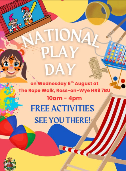 Ross-on-Wye Town Council will be hosting several free activities at the Ropewalk on Wednesday 6th August from 10am to 4pm to celebrate National Playday.