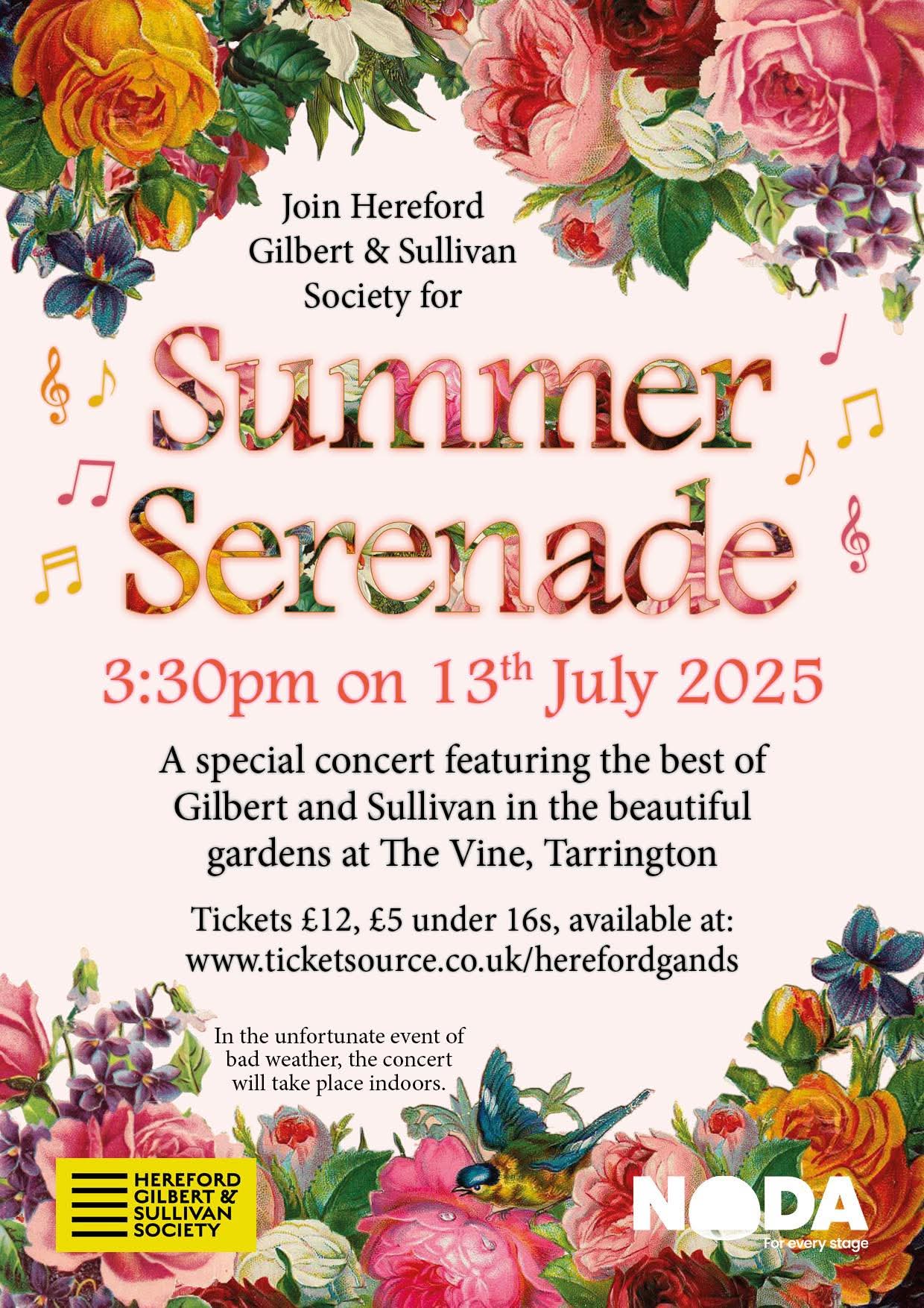 A special concert featuring the best of Gilbert and Sullivan in the beautiful gardens at The Vine, Tarrington.