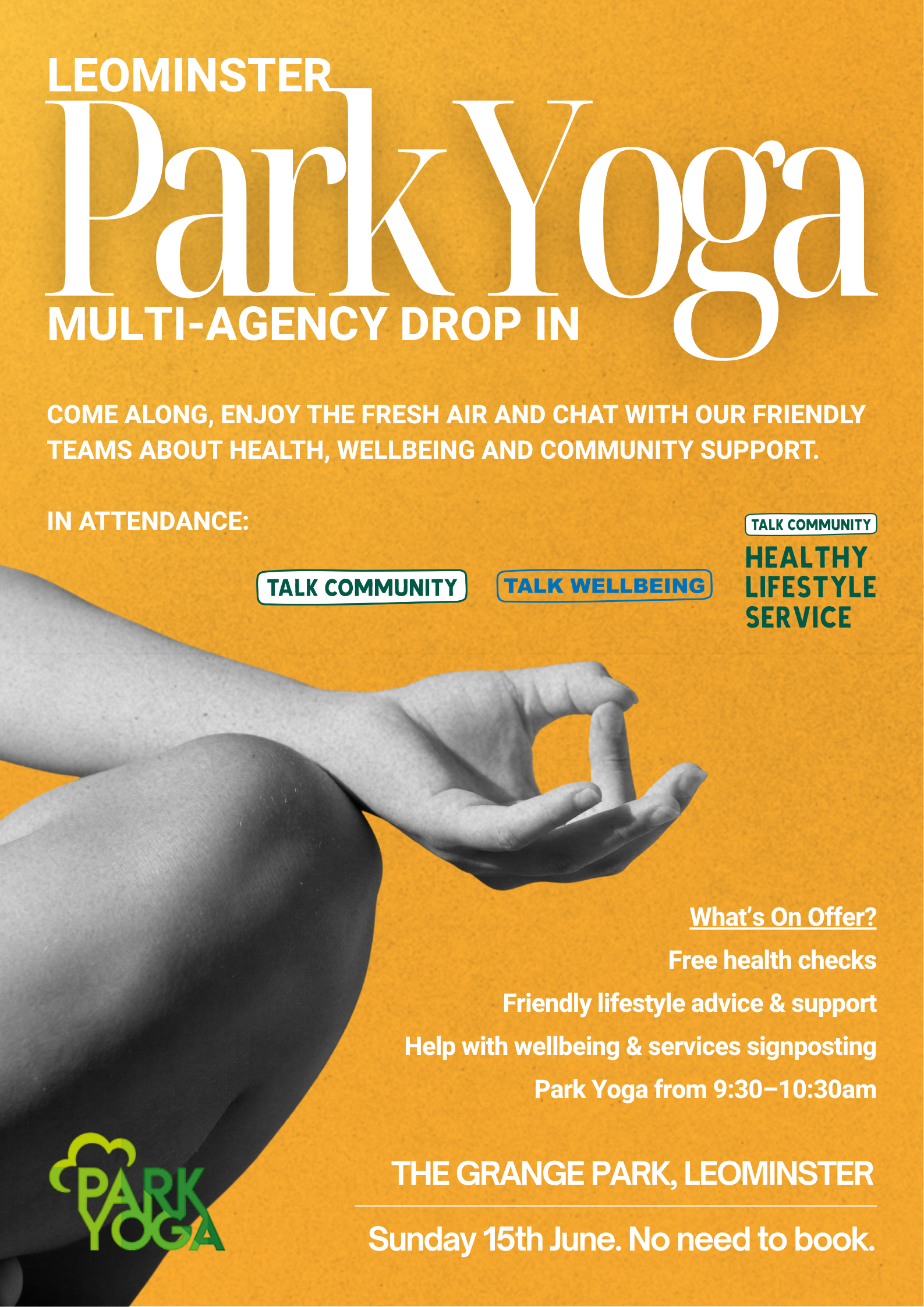 Join us for a special Park Yoga session in Leominster this Sunday at The Grange, starting at 9am.