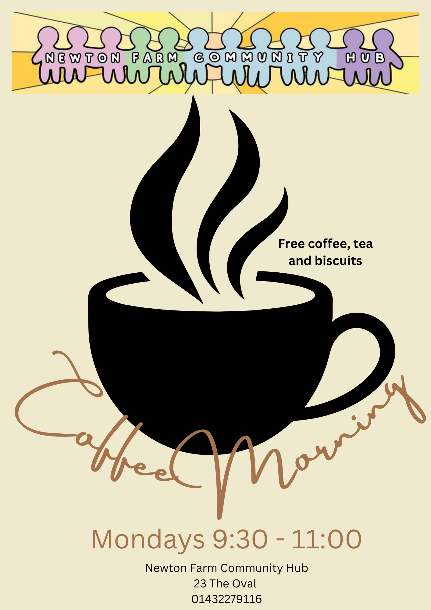 Our community hub is open every Monday at 9.30am - 11.30am for you to come and have a warm drink, along with a warm welcome.