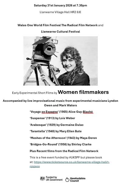 Enjoy early experimental short films by women film makers. Accompanied by live improvisional music from experimental musicians Lyndon Owen and Mark Waters.