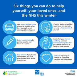 Health leaders across Herefordshire and Worcestershire are asking people to look after themselves this winter by doing six simple things to stay well over winter and to help prevent additional pressures on the NHS.